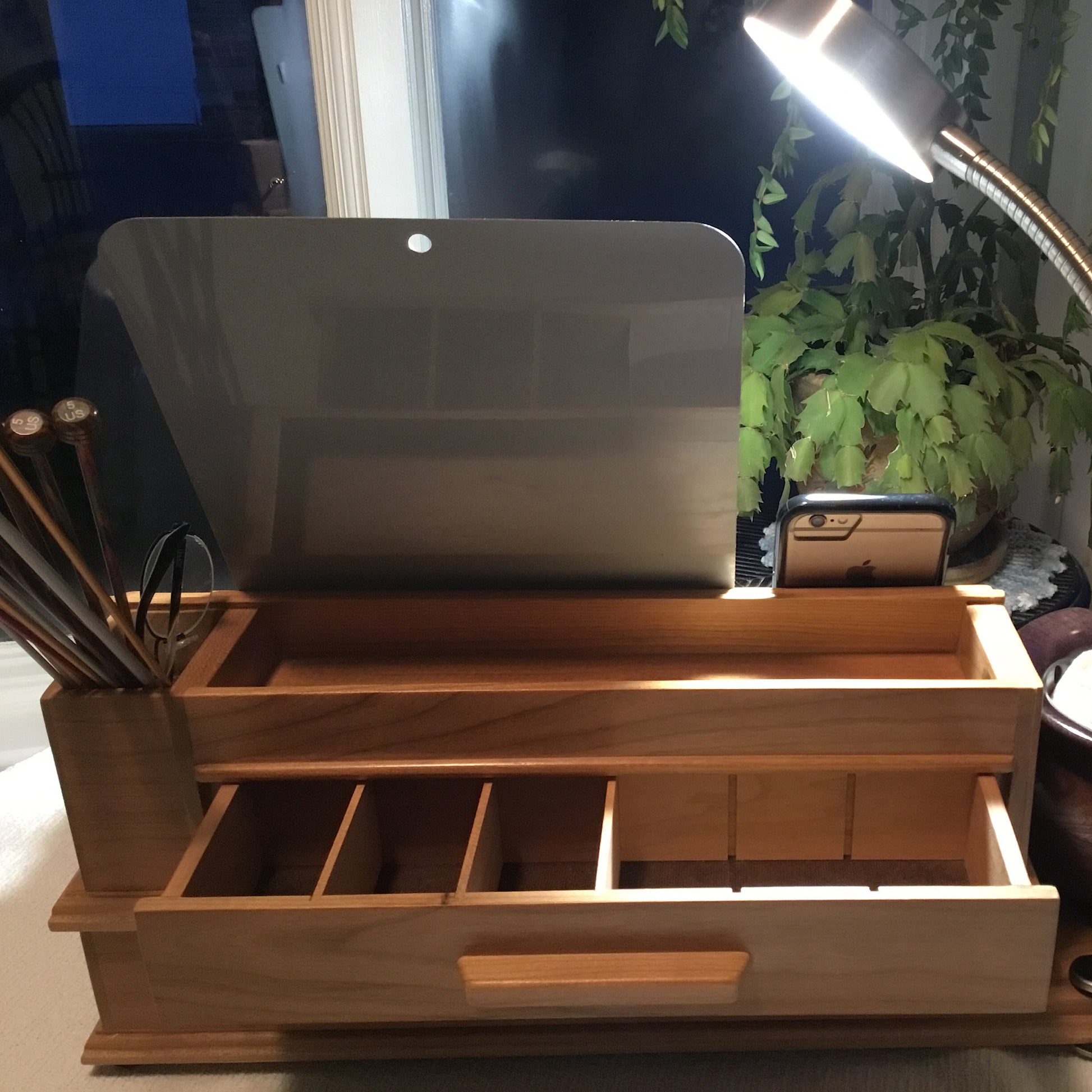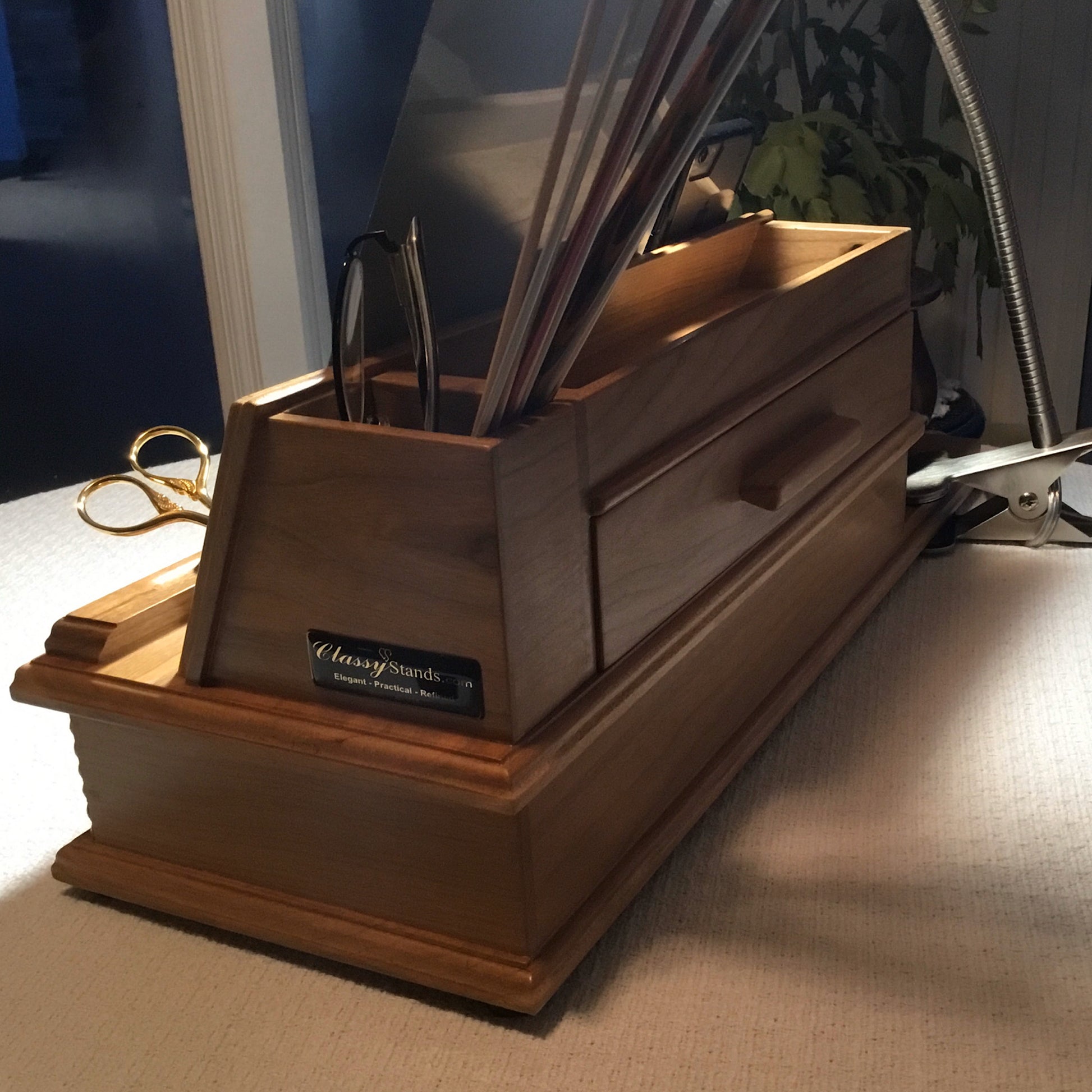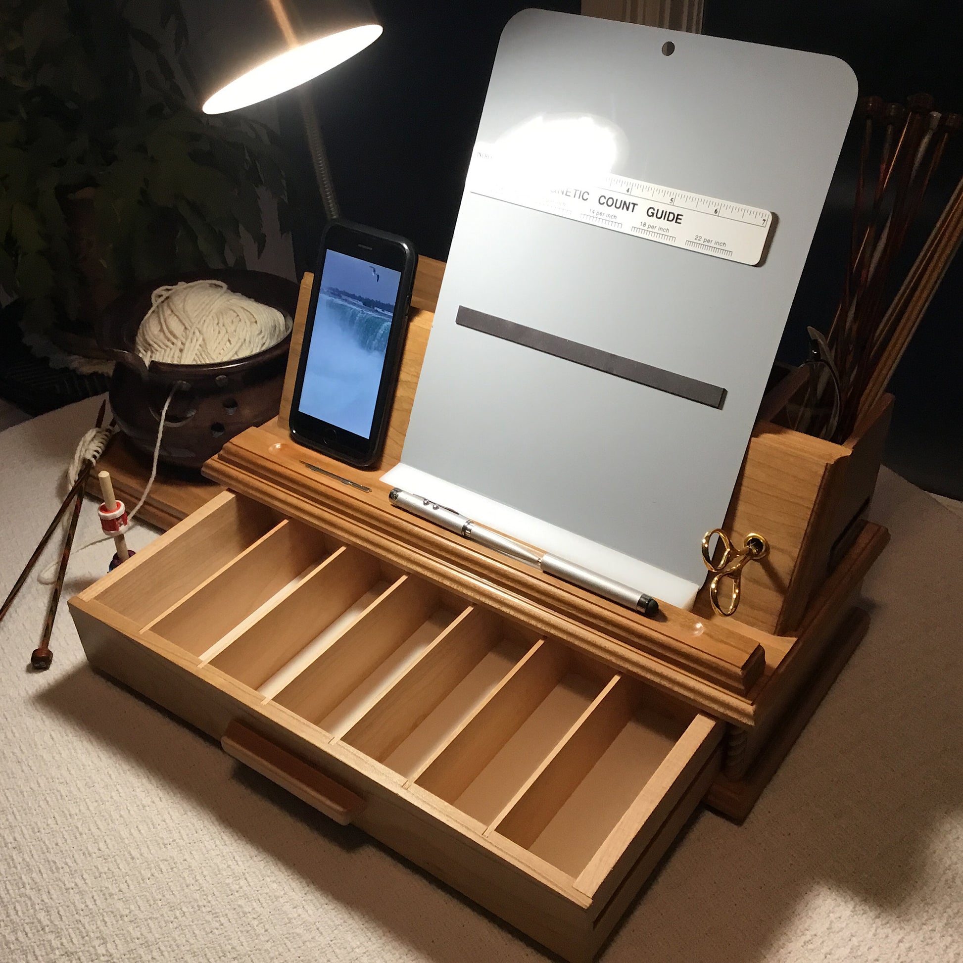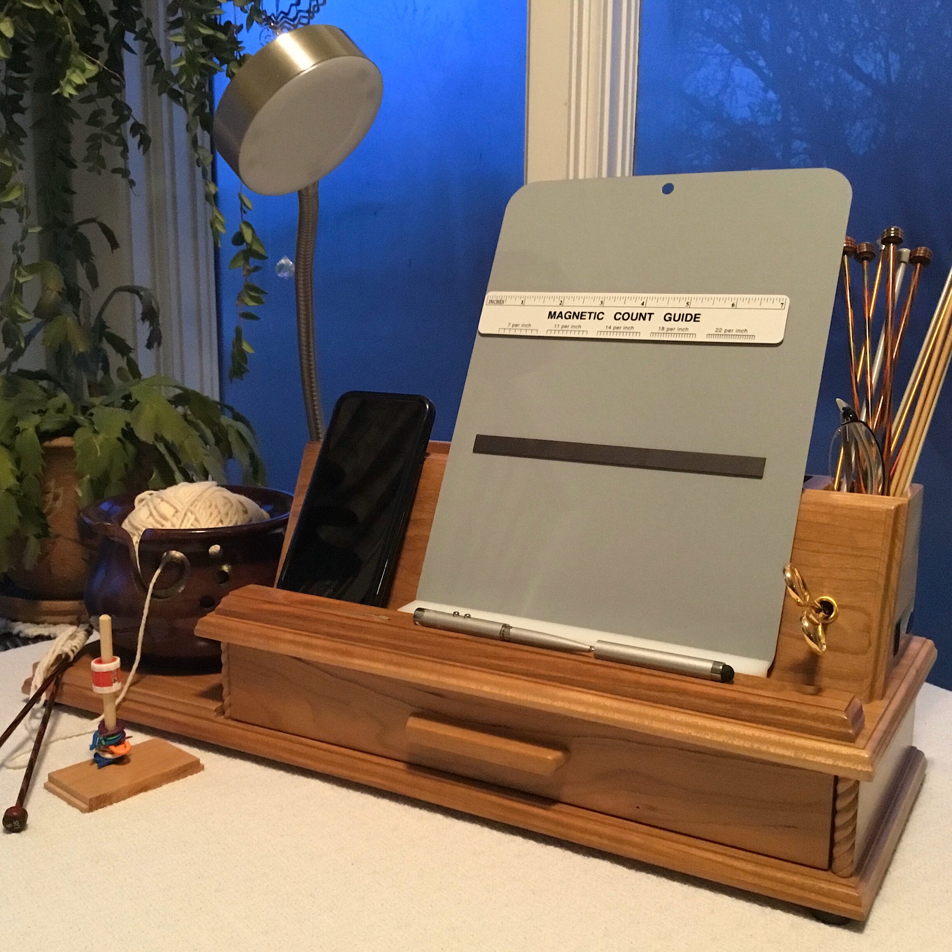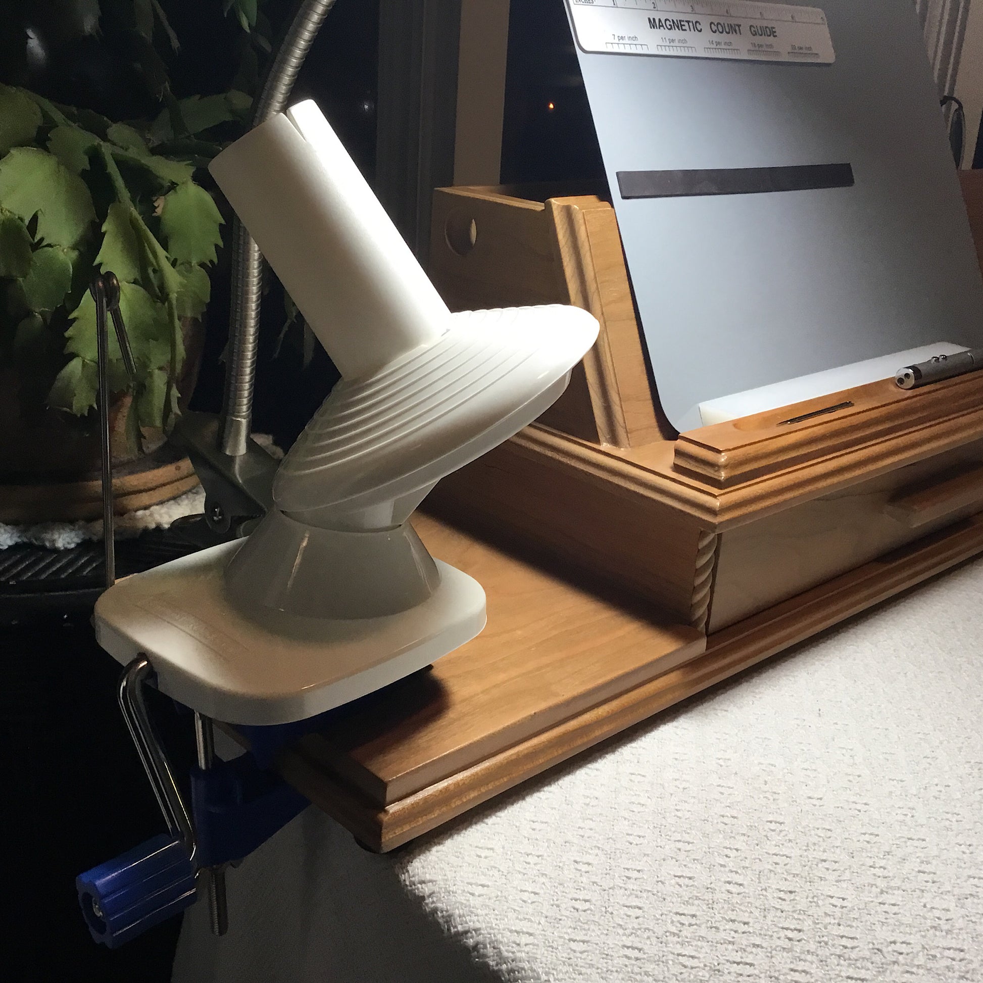 The Elite CraftStation has an extended base for those who Knit or Crochet who need a place to set a yarn bowl, a place to attach/set a light on or attach a yarn winder.