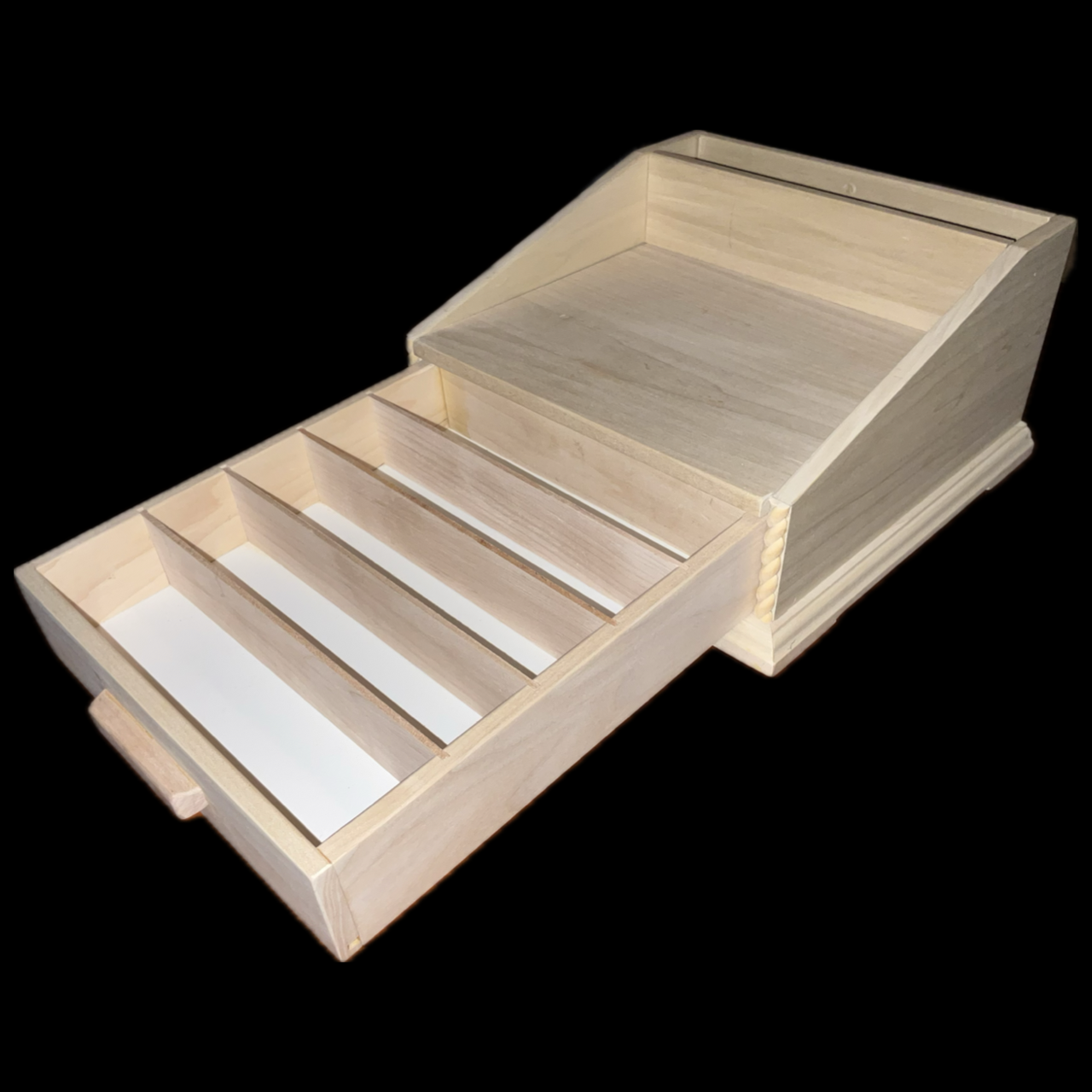 The Base is a companion to the Miny, Pony or Lil' Buddy. Available in two drawer sizes to fit your needs. Both have removable slats to adjust the cavities to desired size. Great for holding regular size thread floss cards, notions and Crochet or Knitting needles depending on length of needles and choice of The Base Size.