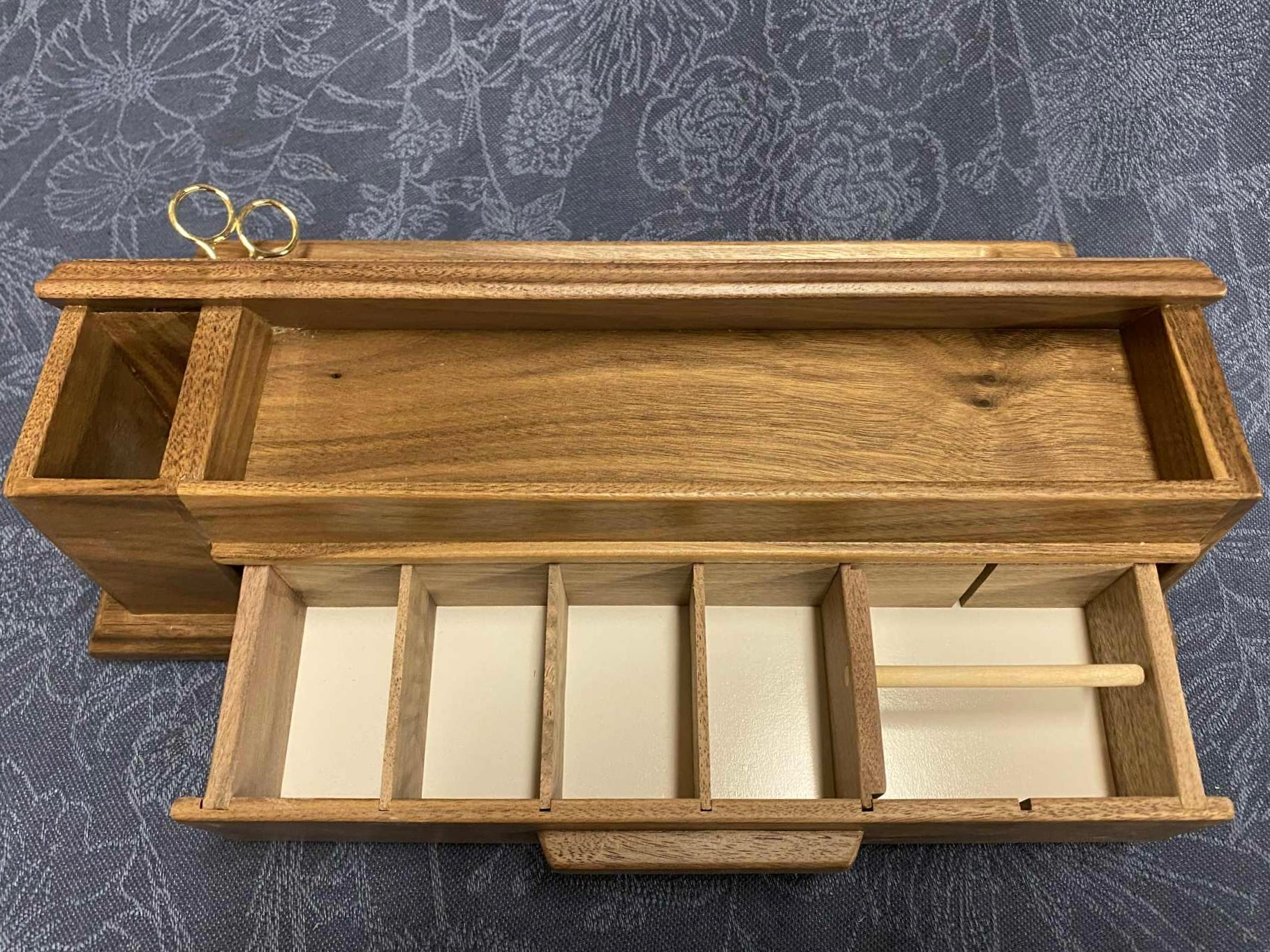 Two open cavities in the rear of the Craftstation to store your needles or notions.